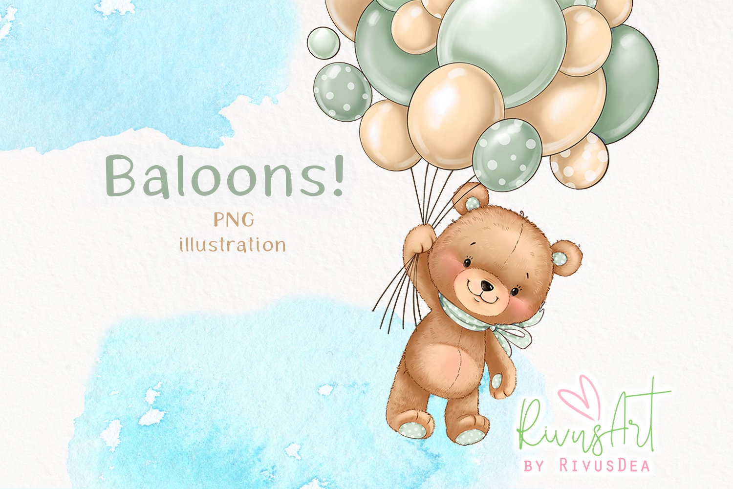 Bear With Balloons Png Olive And Ivory Baby Bear Etsy